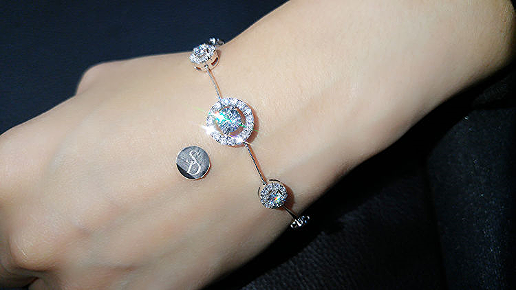 主石6MM,16CM+3CM鏈己925純銀手鏈,八心八箭完美鑽石切割,總長19cm,925silver bracelet,perfect diamond cutting,length19cm