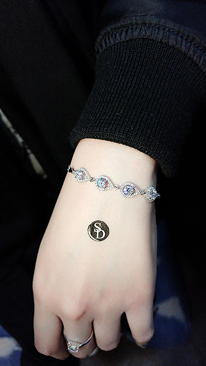 925純銀水滴型,鑲石款手鏈,長度19cm,925silver bracelet,water drop type,stone, length 19cm