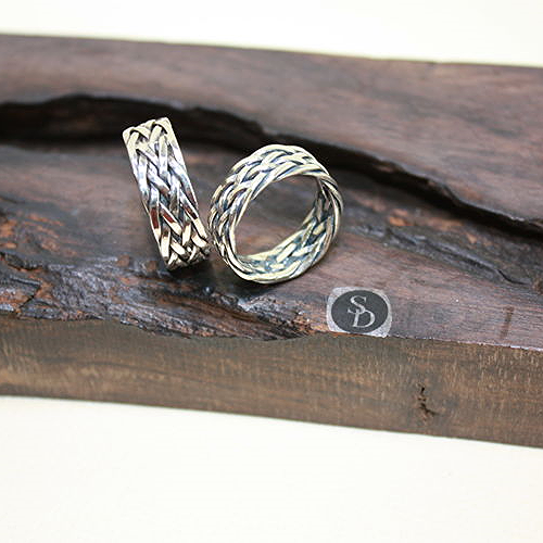 7mm粗,可作情侶款,925純銀編織紋戒指