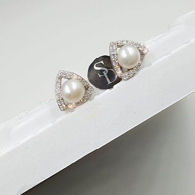 三角形做型閃石珍珠925純銀耳環,百搭款式,經典永恆